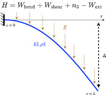 Sébastien Neukirch, Florence Bertails-Descoubes. International Journal of Non-Linear Mechanics (to appear in February 2026). [HAL project website][Paper on HAL (PDF)][Editor link (Open Access)] Summary: The static-dynamic analogy discovered by Gustav Kirchhoff in 1859 shows that the statics of an elastic beam is equivalent to the dynamics of a spinning top. This analogy, where time and angular velocity are, for example, equivalent to arclength and curvatures, allows the use of Emmy Noether's 1918 theorem on continuous symmetries to unravel a quantity that is invariant along elastic rods at equilibrium. A spinning top having a Lagrangian independent of time will have its mechanical energy constant in time. In the same manner, an elastic rod with uniform elastic properties will have the sum of its curvature energy and its tension force uniform along the structure. This arclength invariance property is known in simple cases, but the present approach generalises it to more complex scenarios where extensibility, shear, conservative loads (e.g. gravity), and contact are involved. Moreover, still using Noether's theorem and bringing to light the continuous symmetries of the Lagrangian of the variational approach, we recover all known invariants for the statics and dynamics of rods and ribbons, including coordinate invariants. Furthermore, we show how the arclength invariant may be used to obtain pivotal information on some landmark elastic rod problems, including confinement buckling, sliding sleeves, or plectonemes. Finally, we extend the approach to vibrations. Overall, this paper is an attempt to explain, unify and extend all previous results on rod invariants thanks to the beautiful Noetherian formalism, and to show its practical use on a few relevant applications. |